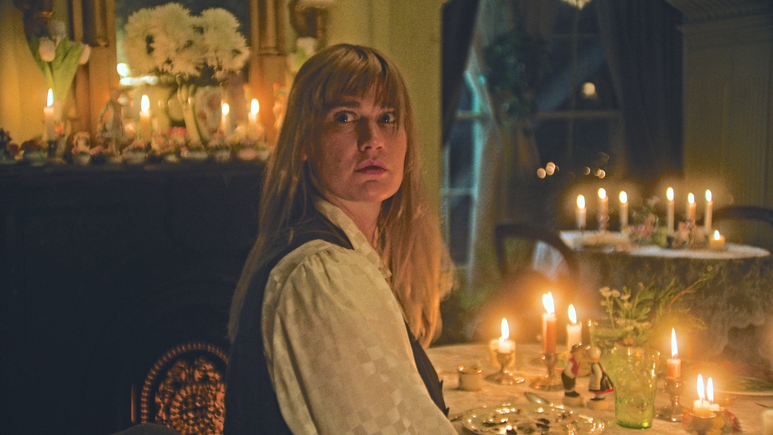 But then we cut to Diana and Homer on their way to a mysterious medical institute where, the couple hopes, Diana will undergo treatment for memory loss and other symptoms, which stem from the physical trauma she experienced. Once at the facility, run by the alternately creepy and caring Farah (Kate Dickie, Timestalker), Diana begins to have visions and seizures. Not only that, but she sees a version of herself both within those hallucinations and out on the location’s grounds.